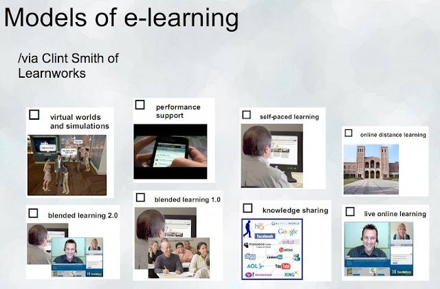 Clint Smith is one amazing e-learning strategist. You may have seen him at the recent Victorian LearnLocal e-learning showcase. According to Clint, these 8 models are the most commonly understood representations of how people engage with e-learning in business and education.